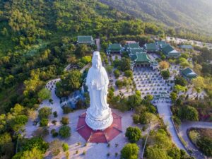 10h35: Xe đưa đoàn đi Bán Đảo Sơn Trà – để thưởng ngoạn toàn cảnh phố biển Đà Nẵng trên cao ngoạn toàn cảnh phố biển Đà Nẵng trên cao. Xe đưa quý khách dọc theo triền núi Đông Nam để chiêm ngưỡng vẻ đẹp tuyệt mỹ của biển Đà Nẵng, viếng Linh Ứng Tự – nơi có tượng Phật Bà 65m cao nhất Việt Nam.